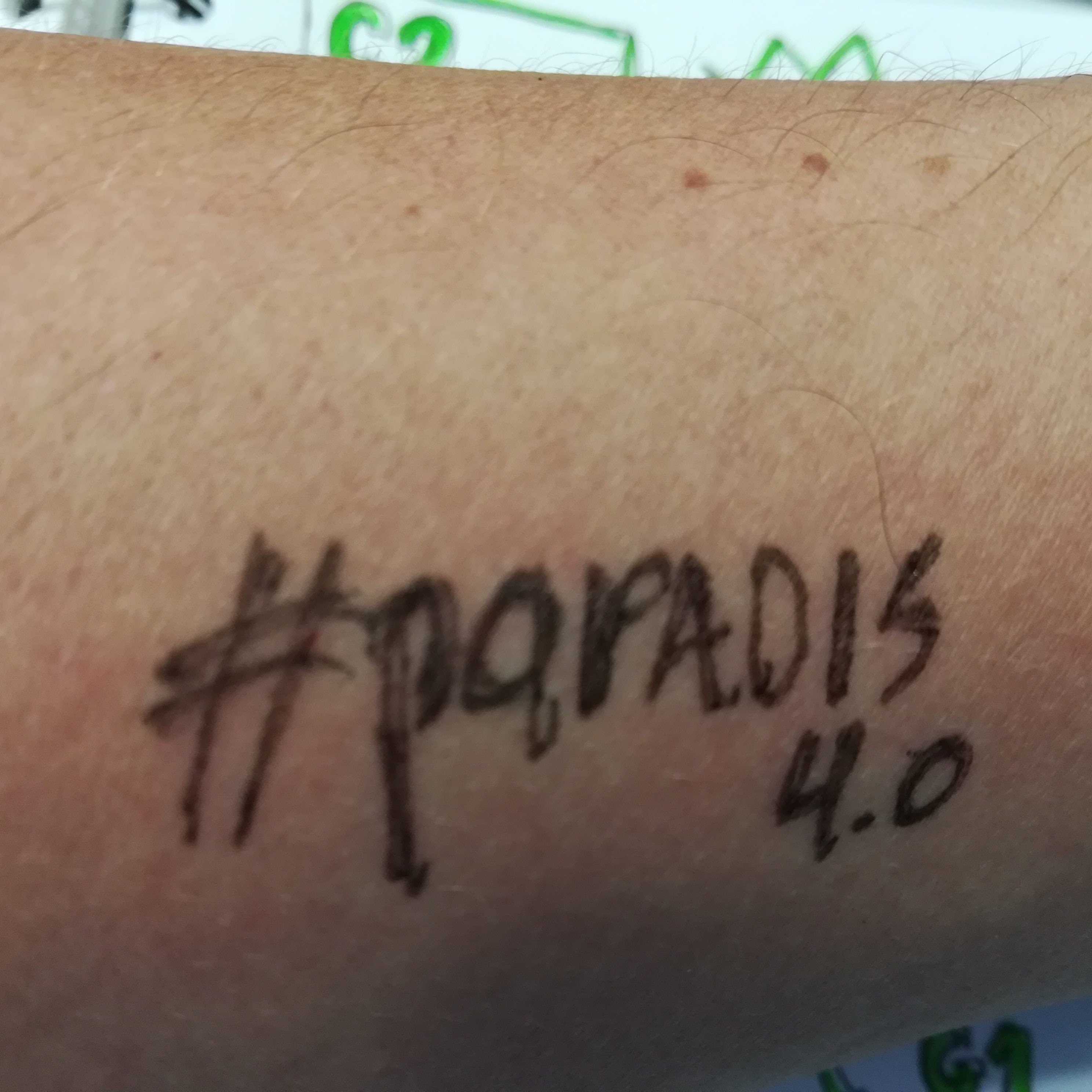 Per finalitzar, ha proposat que un company de classe ens tatués l’emoció que ens ha evocat el text en algun lloc visible del cos. A més, l’hi havíem de fotografiar i compartir-la a les xarxes socials amb l’etiqueta de #c2cast17 i #paradís40 . Si ho fem bé, guanyarem els quilòmetres que pertoquen per aquesta activitat.