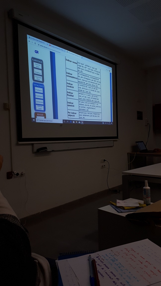 18.30: Com escrivim? El Mestre ens va mostrar un esquema didàctic de com havia de ser un text. La planificació, la textualització i una posterior revisió serien claus per redactar de forma correcta i més entenedora.