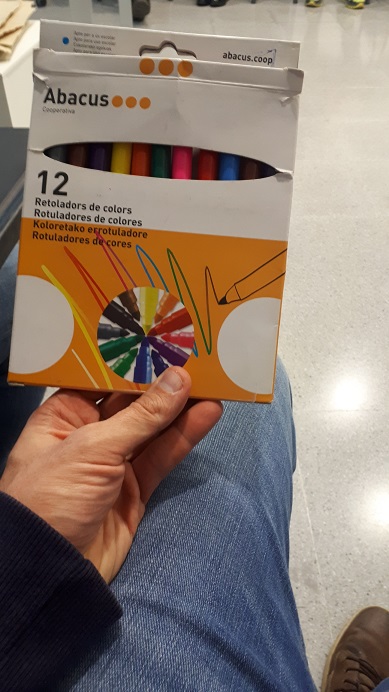 18.50: Mentre estàvem redactant la nostra crònica, el Mestre va marxar de l’aula i va tornar amb cordons de colors. Tot concentrat, els va ordenar i estendre per la seva taula. Què ens estava preparant? Digueu-me mal pensat, però em va semblar quelcom sospitós… No ens oblidem que som refugiats i que ell té el poder en aquest camp de concentració.
