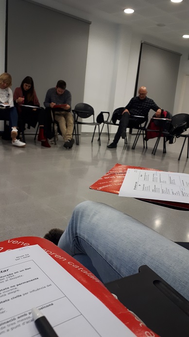 18.20 h: El general ens separa per parelles i comencem la revisió de l’informe de la passada sessió. Cada cop som més ràpids per l’alt nivell dels agents, però alhora som més exigents amb les correccions per les lliçons apreses.