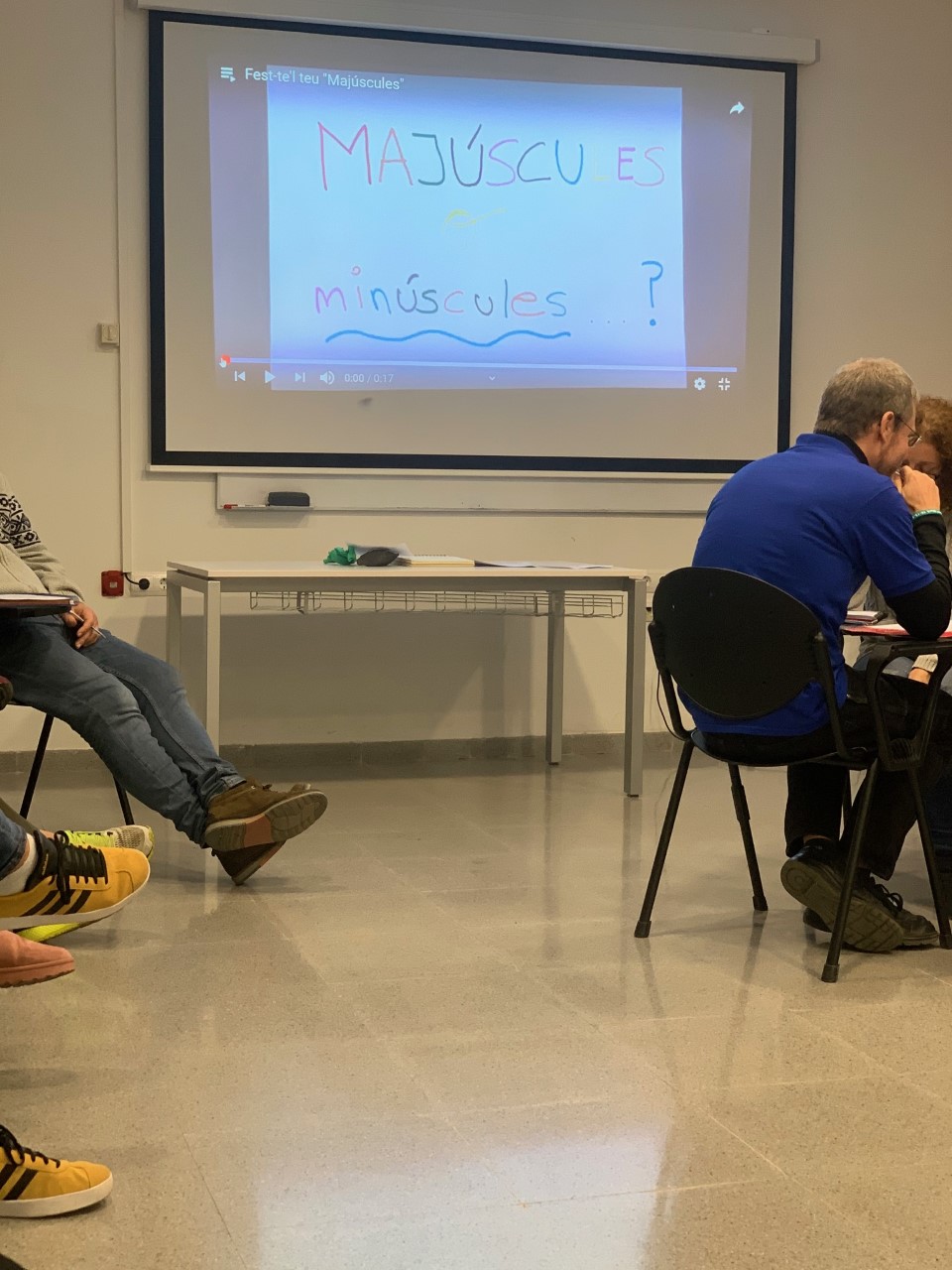 18.00: Després de la xerrada a la porta del centre, els refugiats entrem a classe. Cada refugiat seiem al nostre lloc habitual durant uns minuts. Què ens oferirà avui el dia?