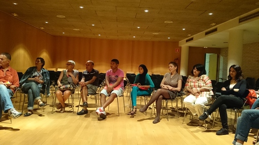 Davant d’un públic integrat per alumnes dels cursos de català, voluntaris lingüístics i professors, Agboton va fer una xerrada molt amena i emotiva en què va combinar l’explicació dels costums culturals del seu país d’origen amb la reflexió sobre el procés d’integració d’una persona immigrant.